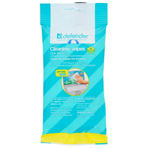 Набор Defender CLN30202 – универсальное решение для ухода за глянцевыми экранами LCD/TFT, плазменными панелями, сканерами и другими гладкими покрытиями. Влажные салфетки эффективно и бережно устраняют различные загрязнения со стеклянных поверхностей. Благодаря мягкому материалу салфетки не повреждают поверхность. Специальный состав чистящего средства не оставляет разводов и устраняет статическое электричество. Defender CLN30202 поставляется в практичной упаковке, содержащей 20 салфеток одноразового использования.