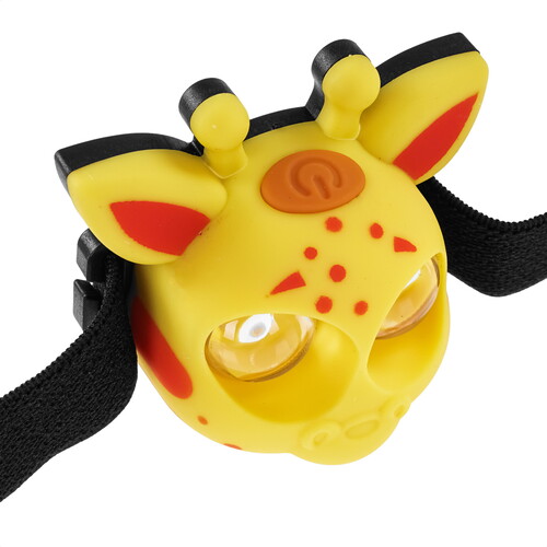 Ночник Tendenza TZ-NL004 дополняет налобный фонарь в виде мордочки жирафа. Для его работы понадобятся 2 батарейки CR2032. Он фиксируется на голове с помощью тянущегося ремешка черного цвета. Возможность регулировать его длину позволяет пользоваться фонарем не только детям, но и взрослым. Включить/выключить налобный фонарь можно с помощью кнопки.