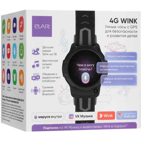 Детские часы ELARI KidPhone 4G Wink позволяют отслеживать местоположение ребенка с помощью навигации GPS, совершать аудио в сети 4G и видеозвонки, прослушивать обстановку вокруг, запускать музыку. Пластиковый корпус с классом защиты IP67 делает их устойчивыми к воздействию пыли и воды. Благодаря мягкому ремешку из силикона часы удобно располагаются на запястье.
