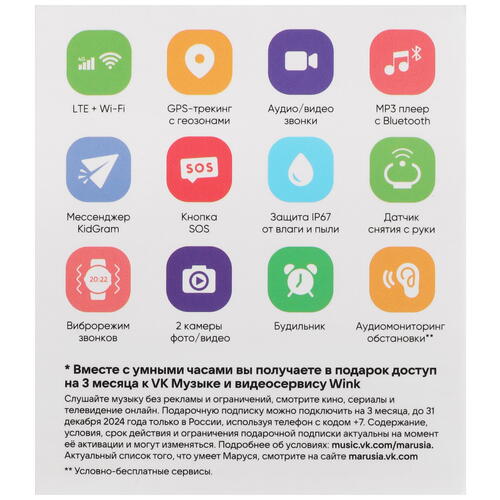 4G, ремешок - черный, Android, iOS, камера, GPS, LBS, ГЛОНАСС, Wi-Fi, IP67