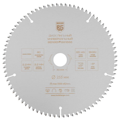 Berger BG BG1666 предназначен для использования в ручных и стационарных циркулярных пилах для чистого многозадачного реза древесины, столярных слоёных плит, ламината, пластика, алюминия и других цветных металлов.