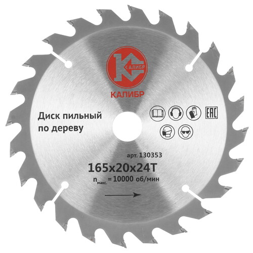 Диск пильный Калибр 165х20мм, 24Т (арт.130353) предназначен для распила изделий из древесины с помощью циркулярной пилы.
