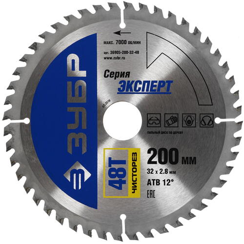 Диск пильный ЗУБР "Чистый рез" 36905-200-32-48 обладает наружным диаметром 200 мм и имеет посадочное отверстие с диаметром 32 мм. Эти два параметра определяют совместимость представленной модели с конкретной циркулярной, торцовочной или станковой пилой. Толщина оснастки соответствует 2 мм, при этом ширина пропила при ее использовании будет равняться 2.8 мм. Конструкцией диска предусмотрено 48 зубьев с автоматической трехсторонней заточкой и шлифовкой, благодаря которым обеспечивается их правильная геометрия.