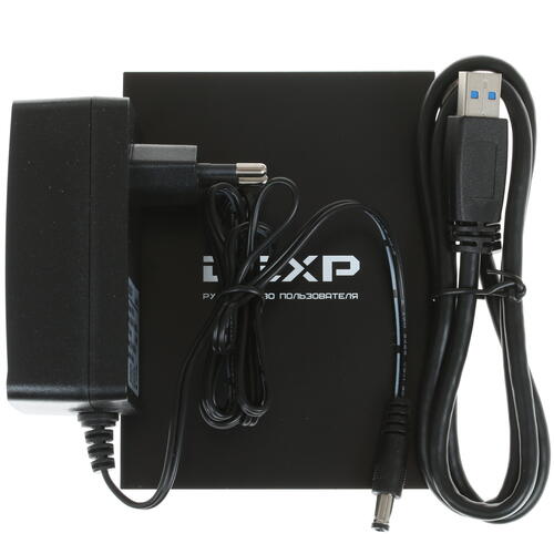 Док-станция DEXP HAF134 требует организации внешнего питания, которое обеспечивается с помощью внешнего адаптера. Блок питания входит в комплект. Корпус док-станции, произведенный из алюминия, имеет черный цвет. Количество портов USB – четыре. Один из портов, выделенный красным цветом, поддерживает быструю зарядку. Помимо блока питания, в комплектацию док-станции входят интерфейсный кабель и руководство по эксплуатации.