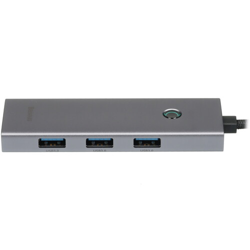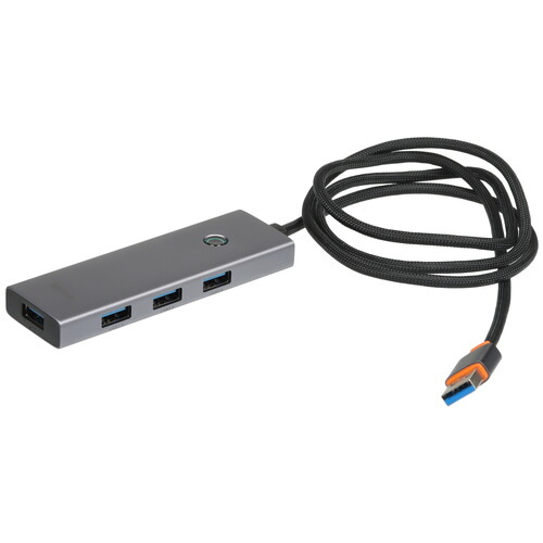 USB-разветвитель Baseus UltraJoy Series 4-Port HUB Lite 100cm Space Grey [B0005280B811-05] имеет 4 порта USB 3.2 Gen1 Type-A и 1 порт USB 3.2 Gen1 Type-C. Длина кабеля - 100 см.