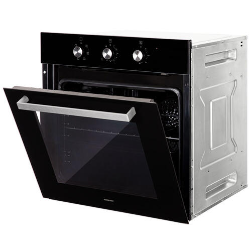 Духовой шкаф, общим объемом 67 л, имеет 6 режимов нагрева и механический таймер, который настраивается до 90 минут и обеспечивает работу духовки на протяжении установленного времени. Духовой шкаф отключается и издает звуковой сигнал по истечению заданного времени готовки. Максимальная температура нагрева 250 °С, ее можно регулировать с помощью металлических поворотных регуляторов. Камера духовки оснащена внутренней подсветкой и охлаждающим вентилятором, который предохраняет шкаф от перегрева. Встроенная функция «Гриль» представлена дополнительным нагревательным элементом, который создает высокую температуру и блюда получаются сочными внутри и с хрустящей корочкой. Конвекционная разморозка, благодаря циркуляции воздуха при комнатной температуре позволяет быстрее разморозить замороженные продукты без использования нагрева. 5-ти уровневые хромированные направляющие в духовом шкафу позволяют легко выдвигать противень и решетку за пределы духовки. В комплекте идут решетка и стандартный противень. Дверца духового шкафа NORDFROST HM 6060 В выполнена из двойного закаленного стекла, оно отличается жароустойчивостью и надежностью в эксплуатации. Модель выполнена в цвете «черное стекло».
