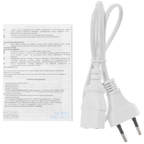 Прибор GOODHELPER KP-A11 действует с мощностью 600 Вт, быстро нагревая воду до нужной температуры. Компактная модель весит всего 160 г и имеет размеры 16x13.5x10 см, благодаря чему идеально подходит для путешествий и командировок, помещаясь в чемодане и заменяя неудобный кипятильник. Будьте внимательны, функции автоотключения не имеется.