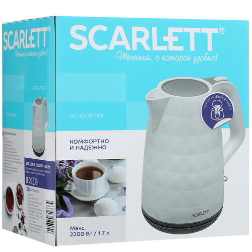 Электрочайник Scarlett SC-EK18P49 может похвастаться наличием фильтрующего элемента, обеспечивающего тщательное устранение посторонних примесей. Благодаря съемной конструкции вы беспрепятственно очистите его от накопившихся загрязнений. По окончании работы прибора автоматически сработает функция выключения.