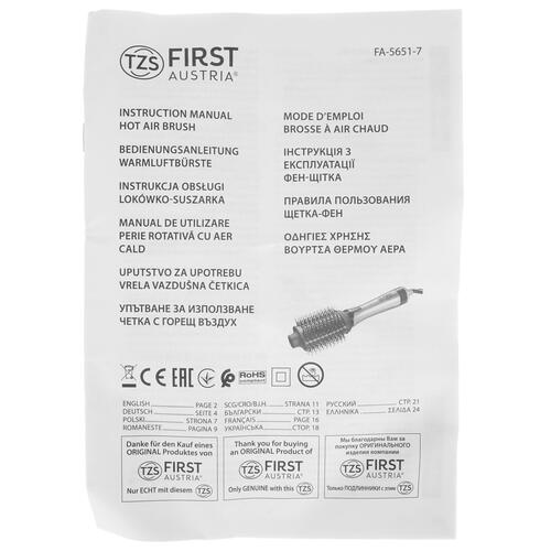 Фен-щетка First FA-5651-7 одновременно высушивает волосы и придает им объем, поэтому станет надежной помощницей для регулярной укладки волос. Овальная щетка обладает размерами 70x45 мм и керамическим покрытием. В данной модели предлагаются два температурных режима и режим подачи холодного воздуха для фиксации прически. Встроенный генератор отрицательно заряженных ионов устраняет статическое электричество и благоприятно воздействует на структуру волос. Петелька для подвешивания и шнур со свободным вращением повышают удобство в эксплуатации First FA-5651-7.