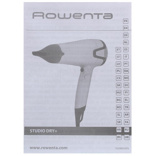 Модель защищена от перегрева, и она отключится, если работает чересчур долго. Насадка-концентратор позволяет делать гладкую укладку или легкие волны. Складная ручка, петелька для подвешивания и сетевой шнур длиной 1.8 м позволяет использовать и хранить фен Rowenta CV 5460 с удобством.