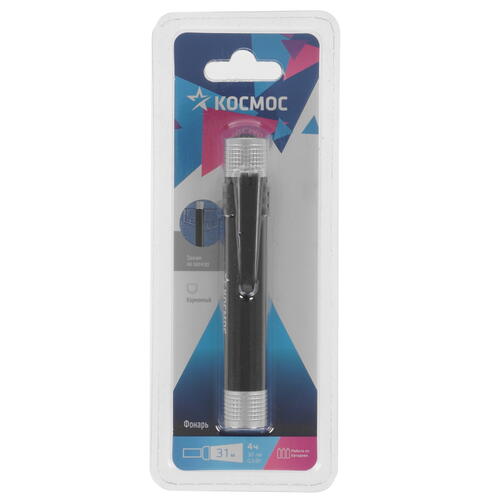 Работает фонарь Космос KOS107B от батарейки ААА в течение 4 часов. На его корпусе предусмотрен зажим для крепления на одежду. Компактные размеры устройства позволяют брать его с собой, положив в сумку или карман.