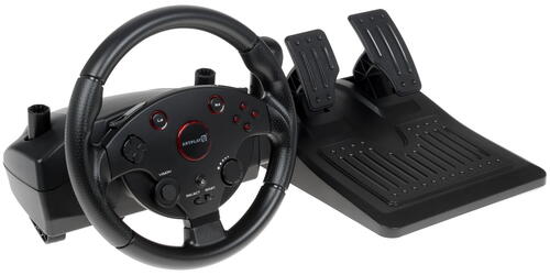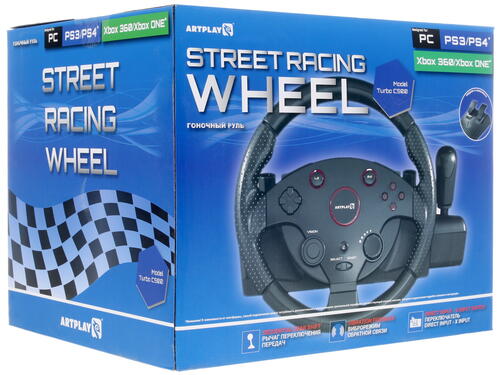 Если вы являетесь любителем гоночных игр, то руль Artplays Street Racing Wheel Turbo C900 станет для вас незаменимым аксессуаром. Он подходит для подключения к PC, Xbox 360, PlayStation 3, а также PlayStation 4 – ко всем устройствам, на которых можно загружать игры, в которых вы будете стремиться финишировать первым. Это проводной полноразмерный руль, особенность которого во встроенном рычаге переключения передач. Он идет вместе с педальным блоком с противоскользящим устойчивым основанием, что позволит вам чувствовать себя так, будто вы находитесь за настоящим авто.