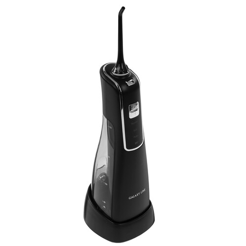 Ирригатор GALAXY LINE GL5000 ‒ беспроводная модель с Li-ion-аккумулятором емкостью 1400 мА·ч. Его ресурса хватает на 40 минут при ежедневном пользовании. Он использует съемный бак объемом 170 мл, а также помпу и батарею встроенные в ручку. Прибор с 2 стандартными насадками обеспечивает полную очистку полости рта. Благодаря маркерным пометкам каждый член семьи сможет определить свою насадку.