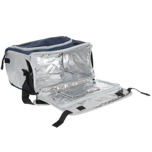 Термосумка Aceline VB-10 объемом 10 л изготовлена из серого и синего полиэстера 600D. Модель способна сохранять холод напитков или тепло еды до 6 часов благодаря наполнению из ева-пены, заизолированному алюминиевой фольгой. Аксессуар состоит из одного внутреннего отделения и 2 внешних карманов на молнии. Для переноски термосумки Aceline VB-10 предусмотрен регулируемый по длине плечевой ремень. Размеры сумки весьма невелики (17x30x24 см), что позволяет с удобством носить ее в руках, хранить в машине или крепить к багажнику велосипеда и делает ее полезной для пикников и отдыха на свежем воздухе.