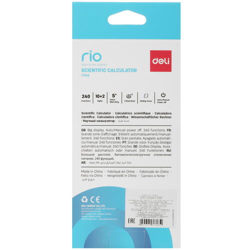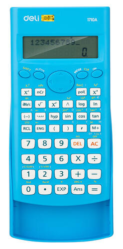Настольный научный калькулятор Deli E1710A голубого цвета имеет разрядность 12 и выполняет точные расчеты. Устройство обладает следующими функциями: вычисление квадратного корня, вычитание, гиперболические функции, деление, логарифмические вычисления, независимая память, процентные расчеты, сложение, тригонометрические вычисления, удаление последней введенной цифры, умножение. Для работы Deli E1710A используются батарейки типа LR44 и встроенный солнечный элемент. Устройство официально сертифицировано для использования на ЕГЭ и имеет размер 165х88х23 мм.