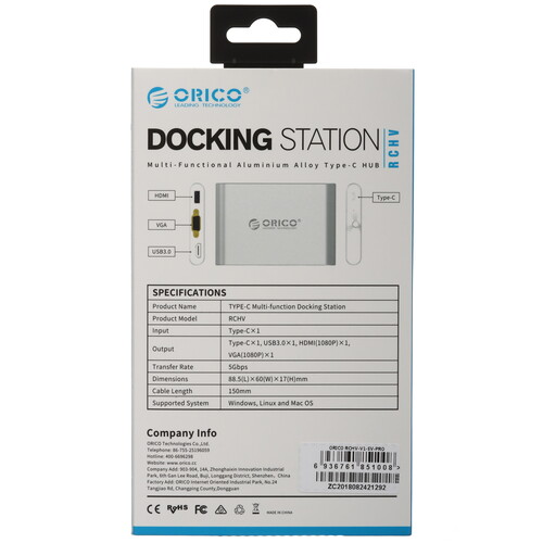 ORICO RCHV позволит оснастить ваш смартфон / планшет / ноутбук дополнительными портами: VGA, HDMI, USB Type -A/Type-C и предоставит возможность зарядить мобильные устройства.