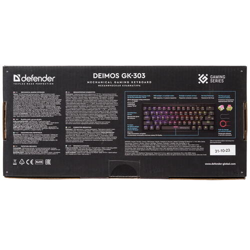 В поисках надежной модели с точным и быстрым откликом на нажатия, с шумоподавлением стоит обратить внимание на клавиатуру проводную Defender Deimos GK-303. Модель с 61 механической клавишей готова обеспечить мягкий и упругий ход, сниженный уровень шума и впечатляющий ресурс нажатий. В сочетании с расширенным функционалом, это устройство понравится даже самому взыскательному геймеру, который привык добиваться при прохождении игр самых сложных высот.
