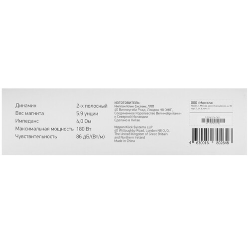 4", полос - 2 шт, 90 Вт, 80 Гц - 20000 Гц, 4Ω, 86 дБ