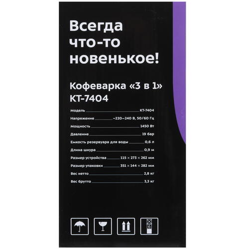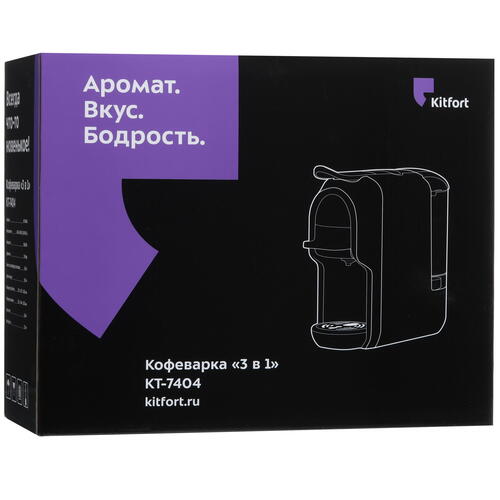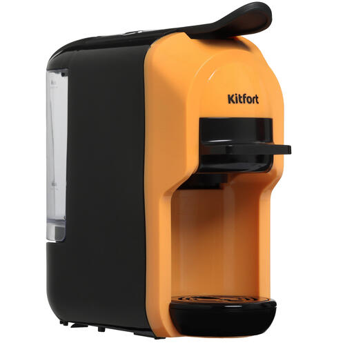 Кофемашина капсульная Kitfort КТ-7404 в пластиковом корпусе оранжевого цвета имеет резервуар для воды объемом 0.6 л. Для приготовления кофе используются капсулы Dolce Gusto и Nespresso Original. При отсутствии действий со стороны пользователя на протяжении 15 мин срабатывает технология автоматического отключения.