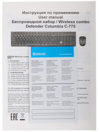 Клавиатура+мышь беспроводная Defender Columbia C-775 черный