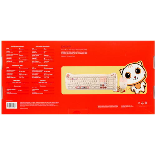 Радиус действия клавиатуры+мыши беспроводной DEXP Yellow Cats достигает 10 м. Кнопки клавиатуры расположены на небольшом расстоянии друг от друга, что исключает погрешности при наборе текстов. Цифровой блок позволяет обрабатывать числовые данные.