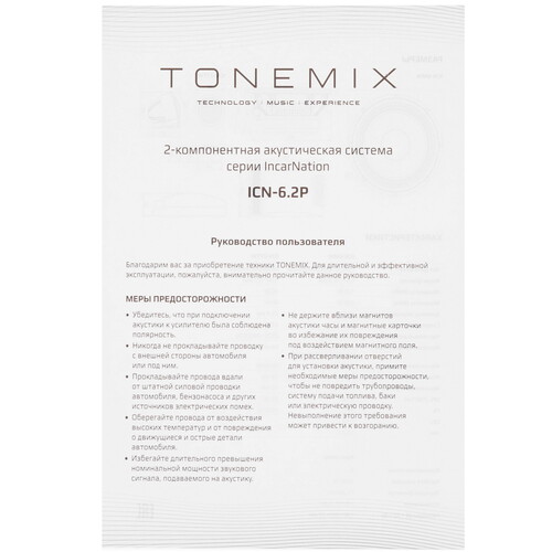 Компонентная акустическая система Tonemix ICN-6.2P 6"