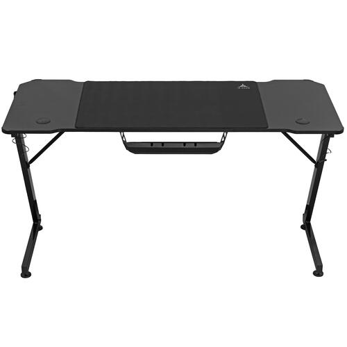 Стол компьютерный ZONE 51 TRINE 140 RGB оснащен прочным стальным основанием и столешницей из МДФ. Пластиковое покрытие упрощает очистку поверхности от загрязнений и капель влаги. Ширины столешницы 140 см хватает для размещения ноутбука или моноблока с контроллерами и нужными для работы или учебы устройствами. Есть возможность регулировки высоты ножек для неровных полов.