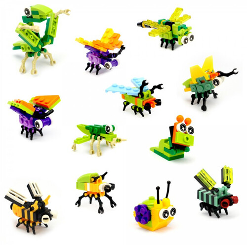 В наборе вас ждут 12 частей, из которых можно собрать букашек и жучков: Мотылек, Пчела, Улитка, Скарабей, Богомол, Стрекоза, Муха, Светлячок, Бабочка, Кузнечик, Червяк и Цикада. А собрав всех жучков, можно разобрать конструктор снова и из всех деталей набора создать Мега Шершня! В набор вложена бумажная инструкция с понятными схемами сборки. Набор конструкторов «Мир насекомых» - это отличный способ весело и с пользой провести время. Пластмассовый конструктор состоит из разноцветных элементов, которые легко собираются и разбираются, что помогает развивать мелкую моторику. Набор изготовлен из безопасного ABS пластика и совместим с деталями конструкторов других марок. Развивающий конструктор для детей обучает концентрации внимания, логическому мышлению и усидчивости, а также повышает знания об окружающем мире.