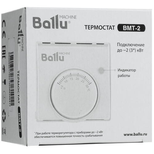 Универсальный терморегулятор Ballu BMT-2 подойдет для подключения к любым однофазным инфракрасным обогревателям. С его помощью вы сможете выбрать температуру нагрева от +5°C до +30°C, легко поддерживая комфортную атмосферу в комнате. На передней панели имеется удобный рабочий индикатор.