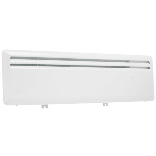 Конвектор Nobo NFK2S 05 предназначается для эффективного обогрева помещения, как в сочетании с другими нагревательными элементами, так и как автономное устройство. Крепление настенное, осуществляется при помощи специальных крючков и саморезов. Прибор может максимально потреблять около 500 Вт мощности. Управление электронное. Рекомендуется использовать конвектор Nobo NFK2S 05 для обогрева помещения с площадью не более 7 м². Режим нагрева воздуха сигнализируется при помощи светодиодного индикатора на корпусе. Безопасность эксплуатации осуществляется при помощи встроенной защиты от перегрева, которая автоматически отключает устройство, если температура поверхности будет выше нормальной. Также предусмотрена защита от попадания пыли и влаги степени IP24. Габариты прибора: 725x200x55 мм (ширина, высота и глубина соответственно). Вес конвектора составляет всего 2.9 кг.