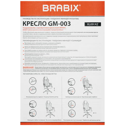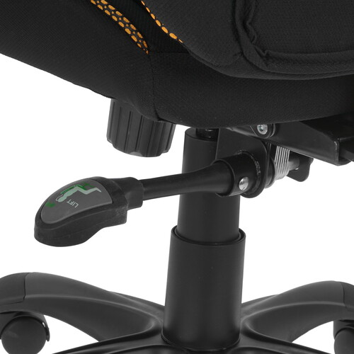 Кресло игровое BRABIX Techno Pro GM-003 сыграет роль верного и бессменного ассистента не только при насыщенных сражениях, но и плодотворном рабочем дне. Выполненная из пластика опора не покроется повреждениями при регулярной нагрузке до 120 кг, а прорезиненные ролики не спровоцируют появление царапин на полу при регулярном перемещении аксессуара. Обивка из первоклассного текстиля не сможет не впечатлить устойчивостью к утрате яркости оттенка и тотальным отсутствием визуальных повреждений. Поднимая или опуская специальный рычажок, вы с легкостью подберете подходящую высоту сидения.