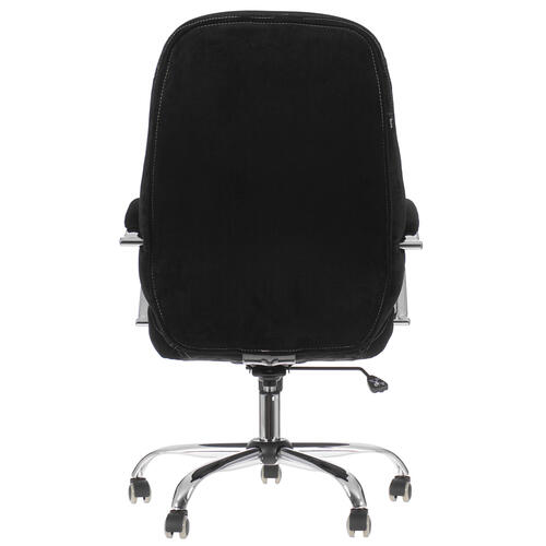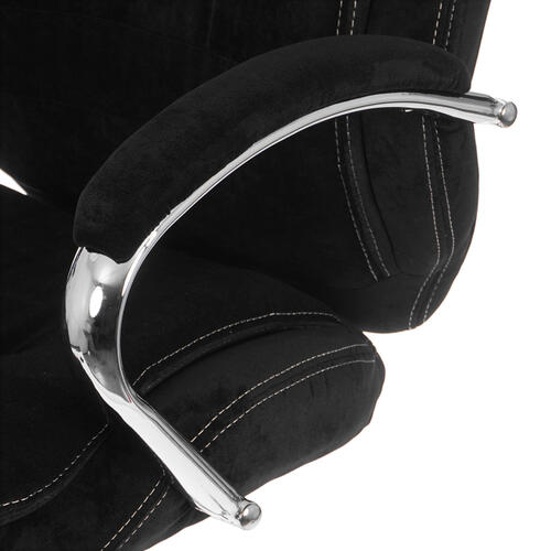 Кресло офисное Бюрократ T-9950SL устанавливается на надежную крестовину из хромированного металла. Максимальная нагрузка, которую изделие выдерживает, ‒ 150 кг. Благодаря роликам из полиуретана кресло можно свободно перемещать по любым напольным и ковровым покрытиям. Обивка черного цвета выполнена из мягкой, тактильно приятной ткани. Наполнитель из поролона делает сидение и спинку удобными для длительной работы за компьютером.