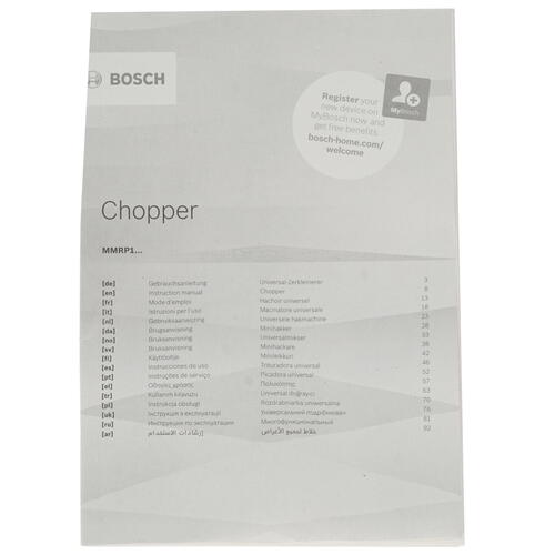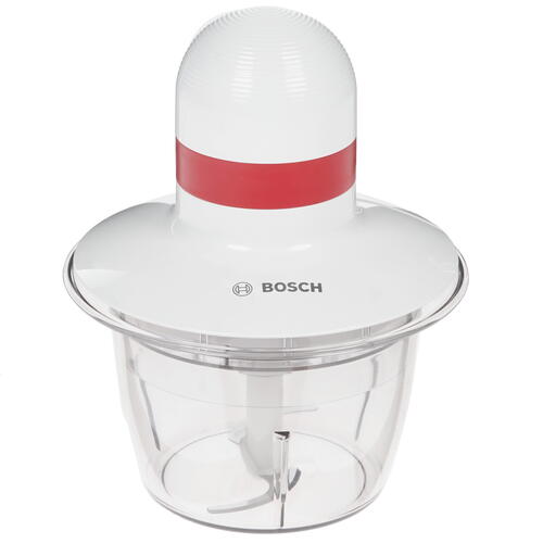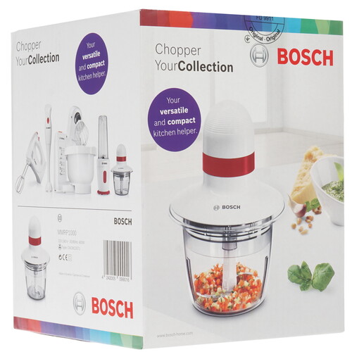 И корпус, и чаша измельчителя Bosch MMRP1000 изготовлены из качественного пластика, который абсолютно безопасен для контакта с пищевыми продуктами. Импульсный режим работы пригодится для обработки особо твердых продуктов, а также для более тщательного измельчения. Суть его работы заключается в кратковременных паузах при измельчении. Устройство оборудовано острым универсальным ножом, который превосходно справляется с измельчением любых ингредиентов. Одним из плюсов этой модели является присутствие возможности мытья чаши в посудомоечной машине.