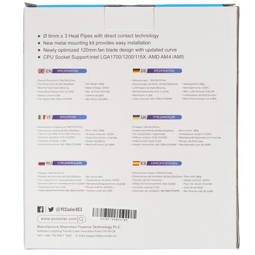 В башенном процессорном кулере PCCOOLER PALADIN EX300S [CLPCC_Paladin_EX300_S] предусмотрен один вентилятор с автоматическим управлением оборотами. Скорость вращения вентилятора задается через ШИМ и может составлять 400-1800 об/мин в зависимости от нагрузки на процессор. Шумность кулера не превышает 28.6 дБ.