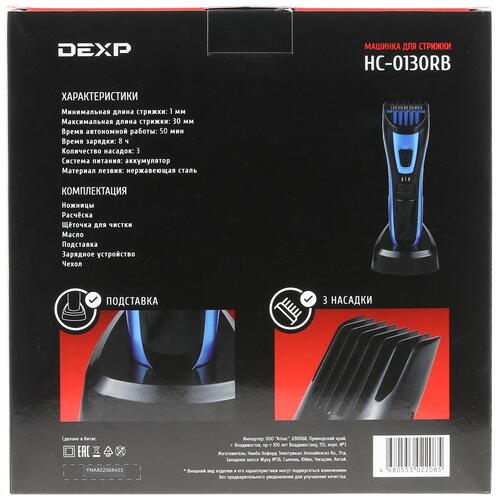 Машинка для стрижки DEXP HC-0130RB черный/синий