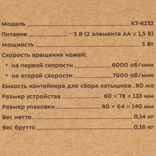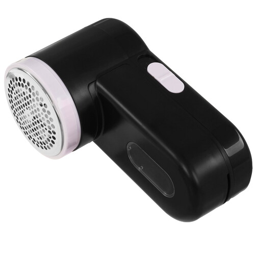 Комки ворса попадают в контейнер, который нужно очищать после каждого использования. Очиститель катышков работает от 2 батареек типа АА.