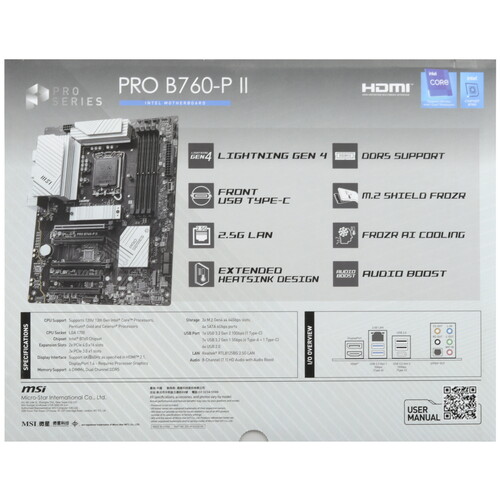 Сетевой контроллер обеспечивает проводное подключение к Интернету со скоростью 2.5 Гбит/с. Для отведения тепла от чипсета и подключенных компонентов применяются охлаждающие радиаторы из алюминия. Благодаря 6-слойной печатной плате с увеличенным содержанием меди и цифровой системе питания MSI PRO B760-P II гарантирует стабильное функционирование.