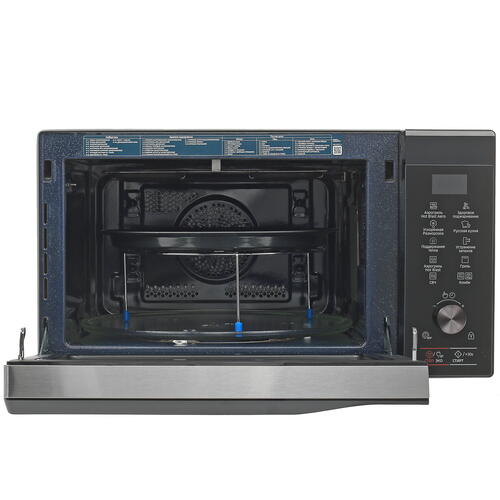 Микроволновая печь Samsung MC32K7055CT имеет сенсорную систему управления. Есть и поворотный регулятор. Информация о работе печи выводится на экран. Внутреннее покрытие камеры – биокерамическая эмаль. Отдельного внимания заслуживает конструктивное исполнение дверцы – она не навесная, а откидная. Такое техническое решение в значительной степени улучшает эргономику печи.