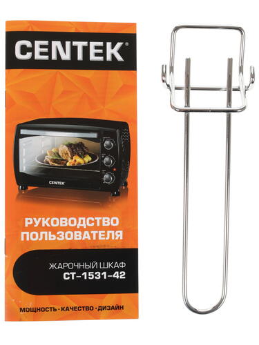 Электропечь Centek CT-1531-42 отличается компактными размерами, за счет чего займет минимум места даже на самой маленькой кухне. Черный корпус модели выполнен из металла, благодаря чему отличается высокой прочностью. Духовка мощностью 1600 Вт работает в 3 режимах, а ее температурный диапазон варьируется от 100 до 320°. Вместимость духового шкафа составляет 42 л. Опция автовыключения позаботится о безопасности использования прибора, если вы вдруг забыли отключить духовку вовремя. Для удобства использования модель оснащена таймером обратного отсчета, рассчитанным на 90 минут. В комплект поставки Centek CT-1531-42 входят непосредственно печь, противень и крюк для вынимания горячего противня.