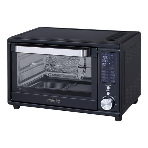 Электропечь Marta MT-EO4294C оснащена вместительной камерой объемом 32 литра, которая позволит одновременно готовить несколько блюд и вмещает продукты большого размера, таких как целая тушка птицы, большой мясной рулет или пирог для всей семьи. Мощные нагревательные элементы в совокупности с режимом конвекции особенно быстро прогревают камеру, поэтому электрический духовой шкаф MARTA поможет Вам приготовить самые вкусные горячие блюда, домашнюю выпечку с румяной корочкой и бесчисленное множество разнообразных кулинарных шедевров без потери времени. Режим конвекции избавляет от необходимости перемещения блюда и противня во время приготовления, так как обеспечивает постоянную циркуляцию горячего воздуха по всей внутренней камере, за счет чего достигается одинаковая температура нагрева блюда со всех сторон, что позволяет пище запекаться и покрываться румяной корочкой равномерно по всей поверхности. Функция аэрогриля, вертел и шашлычница и с электроприводом расширят кулинарные возможности ещё больше. Будет удобно готовить курицу гриль с хрустящей корочкой, шашлыки по своим любимым домашним рецептам и овощи гриль на шпажках, а также бесконечно экспериментировать и пробовать новые вкусы. Аэрогриль позволяет готовить здоровые блюда без использования масла. Особенно вкусно получаются небольшие кусочки птицы. А также, используя максимальную температуру в сочетании с конвекцией, у Вас получится идеальный попкорн. Надёжные компоненты прибора обеспечат длительный срок службы и бесперебойную работу. Электрический духовой шкаф Marta – Ваш отличный помощник на кухне, используя который станет просто и приятно радовать себя и своих близких вкусными горячими блюдами!