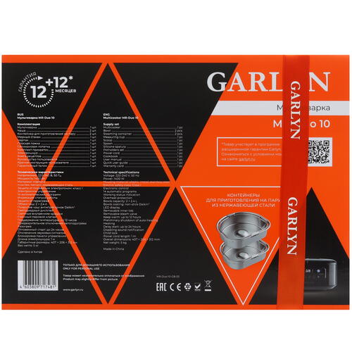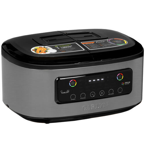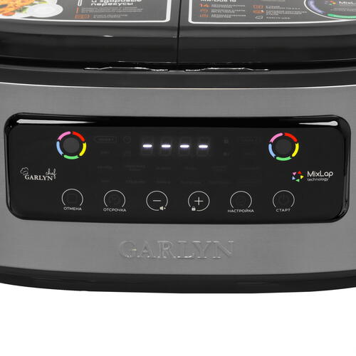 Мультиварка Garlyn MR-Duo 10 мощностью 1400 Вт приступает к работе в обозначенный временной интервал. Достаточно воспользоваться функцией отложенного запуска. Основная чаша объемом 4.8 л обладает покрытием DAIKIN, которое не допускает подгорания продуктов даже при небольшом объеме масла. Доступ к 14 программам открывается через сенсорную панель управления. Дисплей информирует о заданных параметрах.