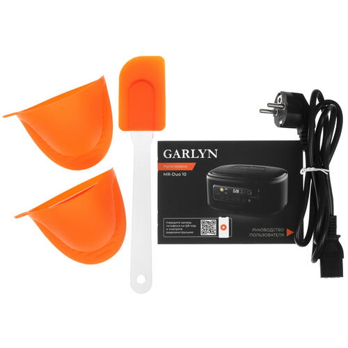 Мультиварка Garlyn MR-Duo 10 справляется с приготовлением молочных каш, плова, супов, йогуртов и других блюд. Предусмотренная конструкцией ручка позволяет удобно вынуть чашу. Опция поддержания температуры предупреждает остывание пищи на протяжении 12 ч. Звуковой сигнал уведомляет, что устройство справилось с выполнением поставленных задач. Лопатка и половник из комплекта служат для сервировки блюд.