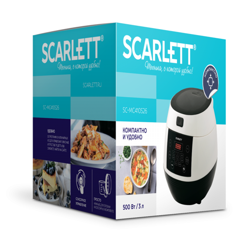 Мультиварка Scarlett SC-MC410S26 сочетает в себе лаконичный элегантный дизайн и широкие функциональные возможности. Она оборудована удобной 3-литровой чашей с антипригарным покрытием, в которой можно готовить повседневные блюда в оптимальном количестве.