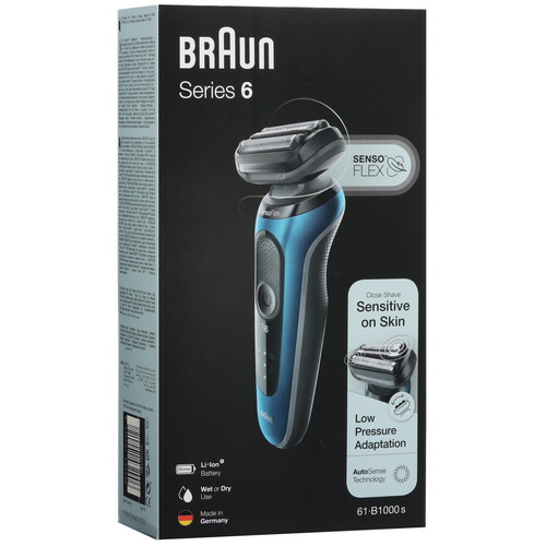 Мужская электробритва Braun 61-B1000s оснащена дерматологически протестированной вращающейся головкой SensoFlex и лезвиями SensoFoil, которые задействуют систему адаптации с низким давлением для более гладкого бритья, не прекращая заботиться о вашей коже.