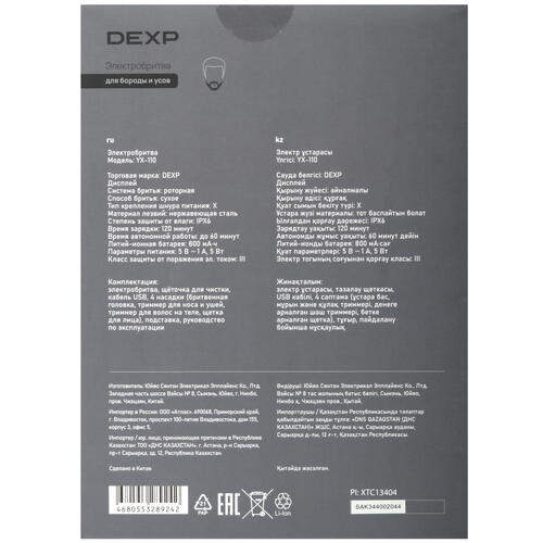 Электробритва DEXP YX-110 оснащена 3 секциями с плавающими головками, которые повторяют контуры лица и достигают труднодоступных мест. Триммер позволяет избавиться от волосков на теле, в ушах и носу. Очистка от накопившихся загрязнений осуществляется под проточной водой.