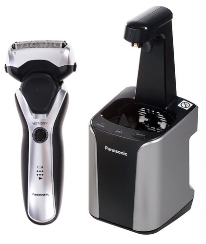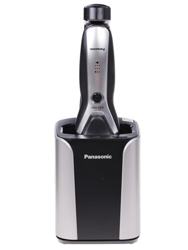 Сеточная электробритва Panasonic ES-RT87 – улучшенная модель среди подобных устройств от Panasonic, выполнена с применением передовых технологий. Исполненная в серебристо-черном цвете, она оснащена нескользящей ручкой, индикатором зарядки и тремя плавающими головками, что подстраиваются под контуры лица. Бритва устанавливается в специальной подставке, через которую проводится зарядка, автоматическая самоочистка и дезинфекция лезвий.