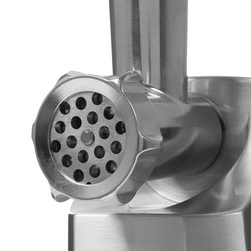 В корпусе Kenwood MG510 предусматривается небольшой отсек для хранения шнура. В комплекте имеется 3 перфорированных диска с различными отверстиями для фарша, а также насадки для приготовления кеббе и колбас. К единственному недостатку данной модели можно отнести отсутствие отсека для хранения комплектующих изделий.