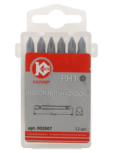 Набор бит Калибр 51959 представляет из себя комплект оснащения, который используется для работы с крепежом. Биты имеют крестообразный шлиц PH1. Этот тип шлица относится к одному из самых распространенных.