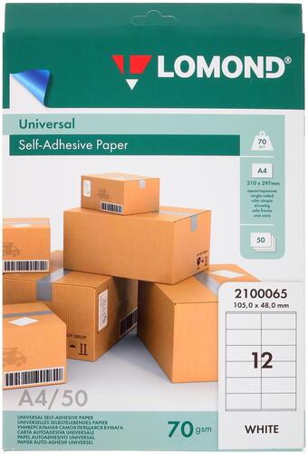 Клеевая основа Lomond 2100065 обеспечивает отличное сцепление практически с любыми поверхностями (бумага, стекло, кожа, ткань, пластик, металл и так далее). Бумага поставляется в пачках по 50 листов формата А4. На каждом листе 12 фрагментов размером 105x48 мм. Такой размер подходит для печати адресных блоков, этикеток, декоративных наклеек.