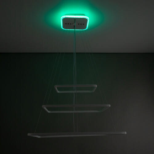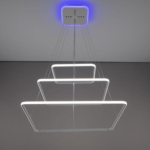 Подвесная светодиодная люстра Citilux Неон Смарт CL731AK110E с голосовым управлением, входит в экосистему Citilux SMART . Светильником можно управлять: из приложения на смартфоне по Wi-Fi, при наличии интернета, с помощью голосовых помощников Алиса и Маруся, а также пультом дистанционного управления и настенным выключателем. Люстра на тросах, в форме каскада из трех подвесных квадратных колец, высоту и угол наклона каждого из которых можно изменить. Корпус изготовлен из алюминиевого сплава, рассеиватель оптический полимер, цвет белый матовый. Крепление люстры подходит для всех типов потолков, в том числе натяжных. Тип крепления – планка. Модель оснащена мощными светодиодами, с возможностью плавной регулировки яркости от 10 до 100%. Цветовая температура регулируется в диапазоне от 3000К до 5500К, с возможностью настроить любые оттенки теплого, нейтрального и холодного света. В основании светильника установлена независимая цветная подсветка RGB. Мощность изделия 140Вт, световой поток 7500Лм, площадь освещения до 26м². Пульт ДУ в комплекте, тип батареек ААА (батарейками не комплектуется).